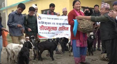 धनकुटा । धनकुटाको छथरजोरटी गाउँपालिकाले अपाङ्गता भएका व्यक्तिका परिवारको जीविकोपार्जन गर्न सहयोग पुर्याउने उदेश्यका साथ बाख्रा र बंगुुरका पाठा वितरण गरेको छ । अपाङ्गता रोकथाम तथा पुन: स्थापना परियोजनाको साझेदारीमा