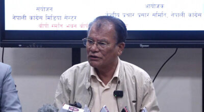 काठमाडाैं । नेपाली काँग्रेसले आसन्न निर्वाचन निष्पक्ष रुपमा सम्पन्न हुने वातावरण सुनिश्चित गर्न सरकारसँग माग गरेको छ । आईतवार पार्टी मुख्यालय सानेपामा आयोजित नियमित पत्रकार सम्मेलनमा बोल्दै सो पार्टीका प्रवक्ता