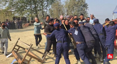 ओखलढुंगा ।सबै मतदाताहरु मतदानका लागि लाईनमा उभिएका थिए। मतदानका क्रममा राजनैतिक दलका प्रतिनिधिहरुका विचमा विवाद भयो । विबाद बढ्दै जाँदा झडपमा परिणत हुन पुग्यो । निर्वाचनमा अभ्यासका क्रममा दलका प्रतिनिधिबीच