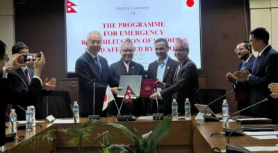 काठमाडौं । नेपाल सरकार र जापान सरकारबीच वीपी राजमार्गको पुनर्निर्माण तथा मर्मतसम्भारका लागि अनुदान सम्झौतामा हस्ताक्षर भएको छ। अर्थमन्त्री रामेश्वरप्रसाद खनाल र गृहमन्त्री ओमप्रकाश अर्यालको उपस्थितिमा बिहीबार मन्त्रालयमा आयोजित एक