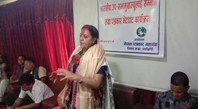 अर्घाखाँची । उपसभामुख तथा नेपाली कांग्रेसकी नेतृ पुष्पा भुसालले आगामी मंसिर ४ गते हुने संघको निर्वाचनमा अर्घाखाँचीबाट प्रत्यक्षतर्फ उम्मेदवार हुने बताउनुभएको छ । शनिबार पत्रकार महासंघ अर्घाखाँची शाखाले सदरमुकाम सन्धिखर्कमा