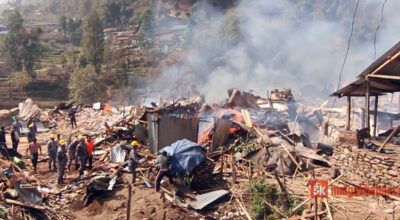 ताप्लेजुङ । मेरिङ्देन गाउँपालिका–३ स्थित दोभान बजारमा आगलागीबाट ४९ घर जलेर नष्ट भएका छन् । स्थानीय भोला पौडेलको घरमा विद्युत शर्त भएर विहान करिब ९ बजेबाट सुरु भएको आगलागीबाट त्यहाँका