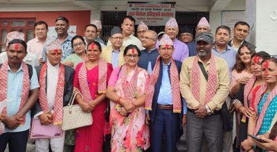 सोलुखुम्बु । जिल्ला समन्वय समिति सोलुखुम्बुमा नेपाली कांग्रेसको प्यानल निर्विरोध निर्वाचित भएको छ । नौ सदस्यीय जिल्ला समन्वय समितिमा नेपाली कँंग्रेसबाट मात्र नौ जनाको उम्मेदवारी परेपछि सबैजना निर्विरोध निर्वाचित हुने