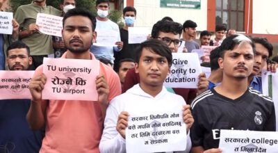 काठमाडौं । थापाथली क्याम्पसमा इन्जिनियरिङ पढाईको शुल्क मनोमानी ढंगले बढाउन खोजेको भन्दै विद्यार्थीहरुले प्रदर्शन गरेका छन् । शुक्रबार स्वतन्त्र विद्यार्थी युनियनले त्रिवि इन्जिनियरिङ अध्ययन संस्थान (आईओई)ले इन्जिनियरिङ पढाईको शुल्क मनोमानी