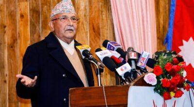 काठमाडौं, माघ १५ । प्रधानमन्त्री केपी ओलीले तीन महिनाभित्रमा आफ्नो विरोधमा रहेका पुष्पकमल दाहाल र माधव नेपाललाई नागरिक समाजको कित्तामा पुर्याइदिने धम्की दिनुभएको छ । आफूनिकट नेपाल ट्रेड युनियन महासंघको
