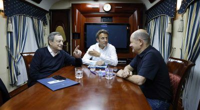 काठमाडौं । फ्रान्सेली राष्ट्रपति इमानुएल म्याक्रोन, जर्मन चान्सलर ओलाफ स्कोल्ज र इटालीका प्रधानमन्त्री मारियो द्राघी रेल चढेर द्वन्द्वग्रस्त मुलुक युक्रेन गएका छन् । उनीहरू उच्चस्तरीय वार्ताका लागि पोल्याण्डबाट युक्रेनकाे राजधानी