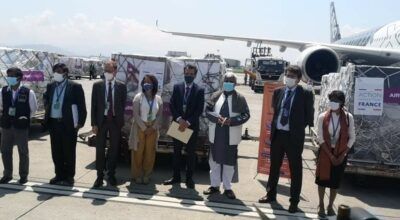 काठमाडौं । नेपाललाई फ्रान्स सरकारले स्वास्थ्य समाग्री सहयोग गरेको छ । कोभिड(१९ महामारी रोकथाम तथा न्यूनीकरणका लागि फ्रान्सले स्वास्थ्य सामग्री सहयोग गरेको हो । नेपालका लागि फ्रान्सका राजदूत फ्रान्कोइस जेभियर