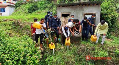 नमोबुद्ध नगरपालिका–४ छत्रेपाटीमा स्थानीय एक परिवारले बिक्री वितरण गरिरहेको घरेलु मदिरा बुधबार बरामद गरी नष्ट गरिएको छ । उक्त परिवारका सदस्यहरूमा कोभिड–१९ पोजेटिभ भएको थियो ।