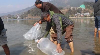 काठमाडौं । विश्व सिमसार दिवसको अवसर पारेर फेवातालमा माछाको भुरा छोडिएको छ । शुक्रबार विश्व सिमसार दिवसको अवसरमा कास्कीको पोखारास्थित फेवातालमा माछाका भुराहरु छोेडिएको हो । पोखरा महानगरपालिका वडा नम्बर