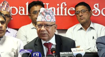 काठमाडौं । नेकपा (एकीकृत समाजवादी)का अध्यक्ष माधवकुमार नेपालले राजदरबार हत्याकाण्डबारे प्रधानमन्त्री पुष्पकमल दाहालले पछिल्लो समय दिएको अभिव्यक्तिप्रति आपत्ति जनाउनुभएको छ । जनकपुरमा बिहीबार समाजवादी पत्रकार संघ धनुषाले आयोजना गरेको पत्रकार