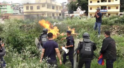 सोमबार नेता नेपालको निर्वाचन क्षेत्रस्थित बालकुमारीमा राष्ट्रिय युवासंघ नेपालले पार्टीको विरुद्धमा लागेको भन्दै नेता नेपालको पुत्ला दहन र सांकेतिक प्रदर्शन गरेको हो ।