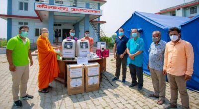 काठमाडौं, जेठ २५ । राजकीय थाइ विहार, लुम्बिनीले कोरोना भाइरसविरुद्ध लड्न स्वास्थ्य सामग्रीहरु उपलब्ध गराएका छन् । विहारका प्रमुख भिक्षु फ्रा श्रीवोधिविदेस सुफोट भन्तेबाट स्वास्थ्य सामग्रीहरु प्राप्त भएको हो ।