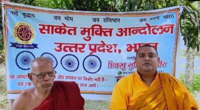 काठमाडौं, साउन २१ । भारतको अयोध्यालाई ‘साकेत’ घोषणा गर्न माग राखेर आन्दोलन गरिरहेका भारतीय बौद्धहरुप्रति नेपालका बौद्धहरुले ऐक्यबद्धता जनाएका छन् । साकेत मुक्ति सरोकार समूह नेपालले बुधबार काठमाडौंस्थित भारतीय दूतावासमार्फत्
