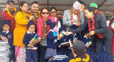 धनकुटा । धनकुटामा सामुदायिक विद्यालयका विद्यार्थीलाई न्यानो कपडा वितरण गरिएको छ । धनकुटाको साँगुरीगढी गाउँपालिका– ३ का ८ वटा सामुदायिक विद्यालयका ३२८ विद्यार्थीलाई न्यानो कपडासहित शैक्षिक सामाग्री वितरण गरिएको हो