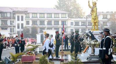 काठमाडौं । नेपाली सेनाले आज ‘पृथ्वी जयन्ती तथा राष्ट्रिय एकता दिवस’ मनाएको छ । आज २९९औं पृथ्वी जयन्तीको अवसरमा सेनाले जङ्गी अड्डास्थित श्री ५ पृथ्वी नारायण शाहको शालिकमा सलामी तथा